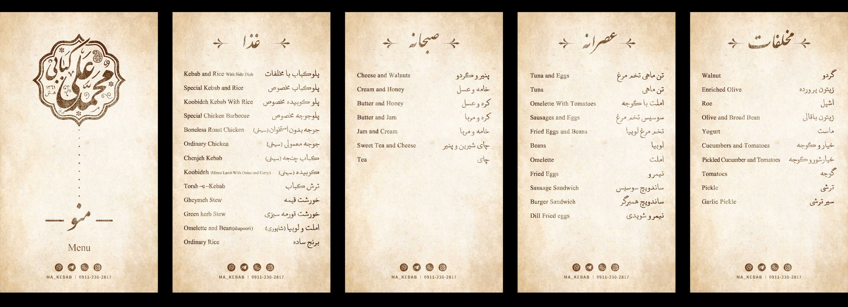 نمونه کار های انجام شده ی طراحی منو توسط ما